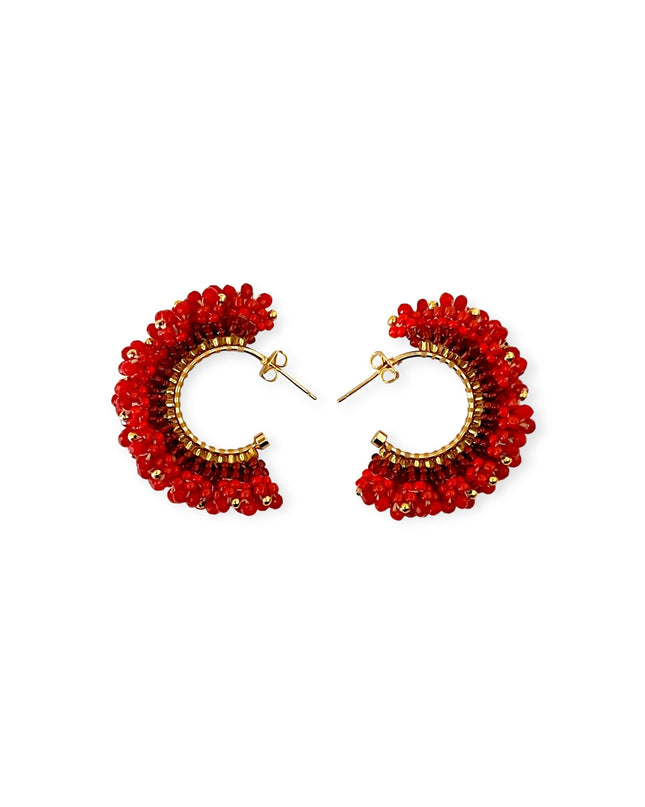 Earrings, bracelets, necklaces, rings in red, made in a variety of designs and materials. These unique, and often one-of-a-kind pieces from our talented solo or small shop designers (often a family of shared talent and inspiration) come in a range of materials including garnet and bamboo to provide a shot of rich red color - Sundara Joon