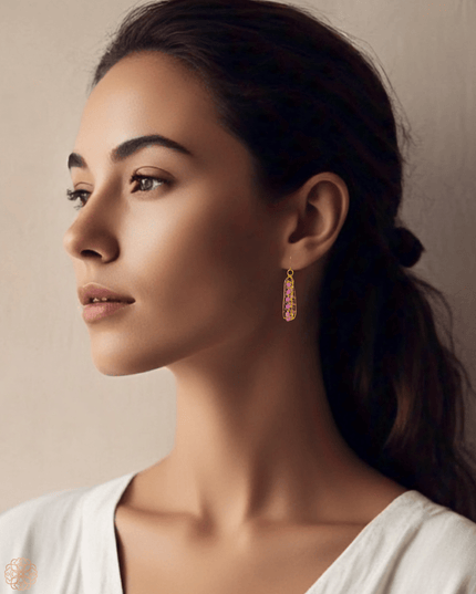 Each earring is lightweight and comfortable, making them ideal for everyday wear or a special evening out. The natural sparkle of the amethyst stones adds a graceful shimmer, while the subtle hoop shape creates an eye-catching yet understated silhouette.
