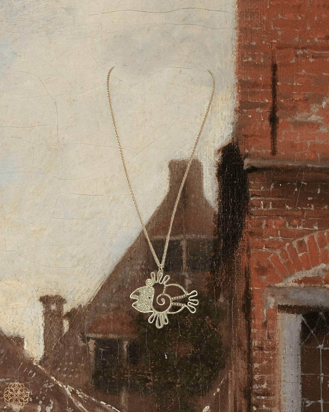 We’re completely charmed by this fish-inspired pendant necklace, which brings a splash of whimsy and creative spirit to any look. With its clean, playful silhouette and just-right size, it's one of those pieces that's simply fun to wear—on its own for an easy statement, or layered with your other favorite chains for a personalized, collected vibe.