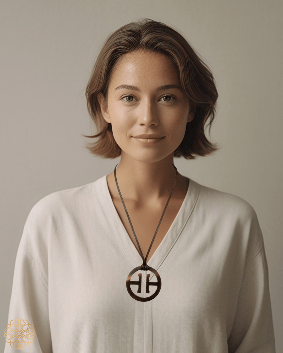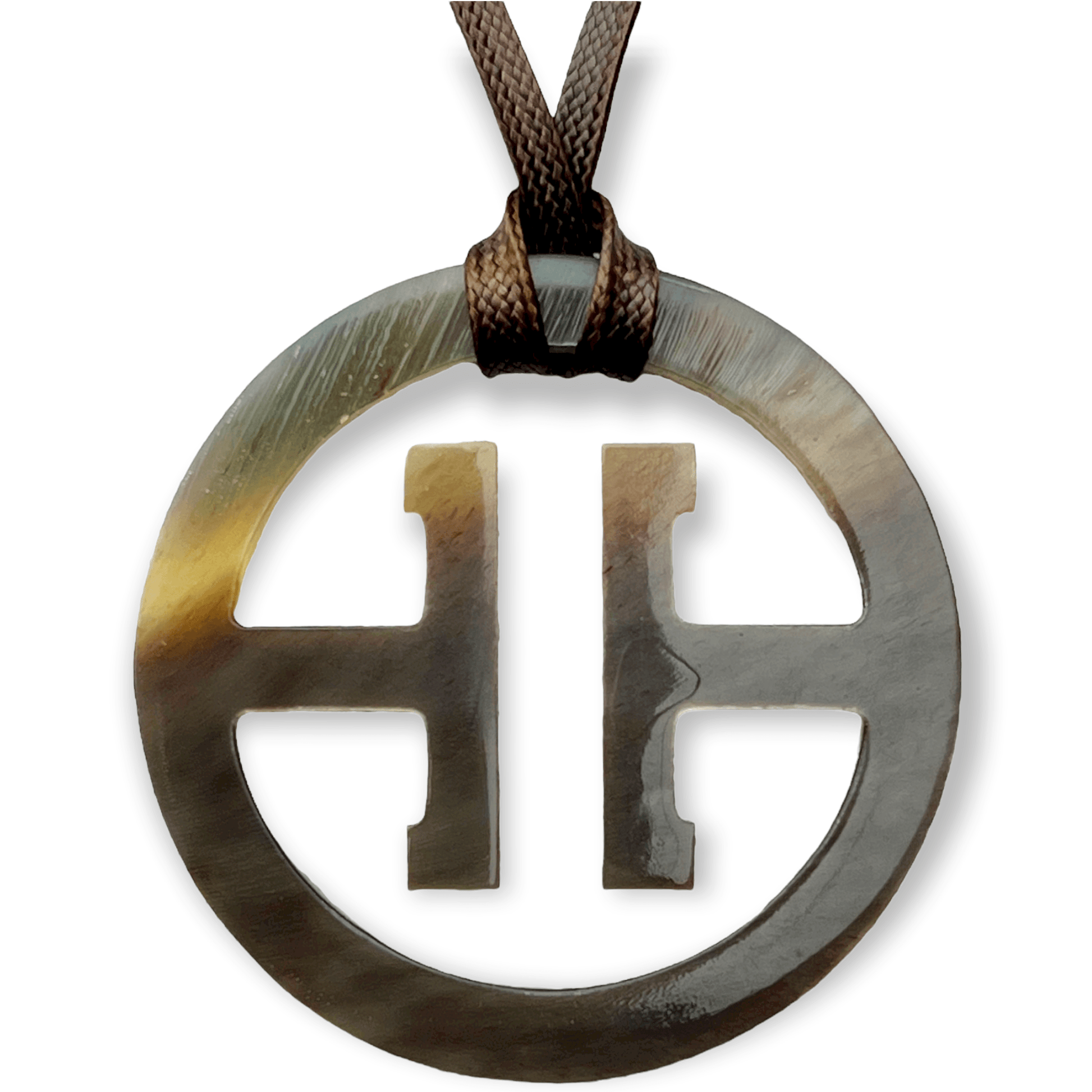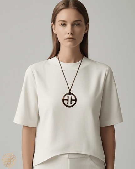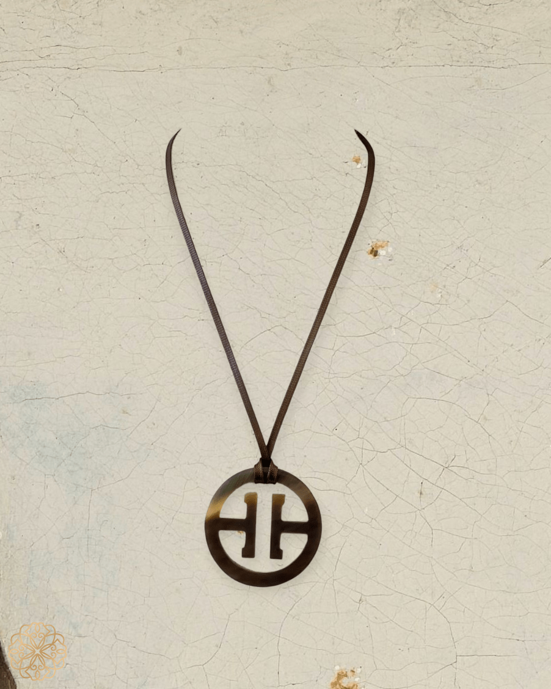 This unique Asian inspired pendant necklace goes with anything and is sure to be a go-to item for your wardrobe. The circular shaped pendant necklace is hung on an adjustable dark brown cord so the necklace length can be easily customized.