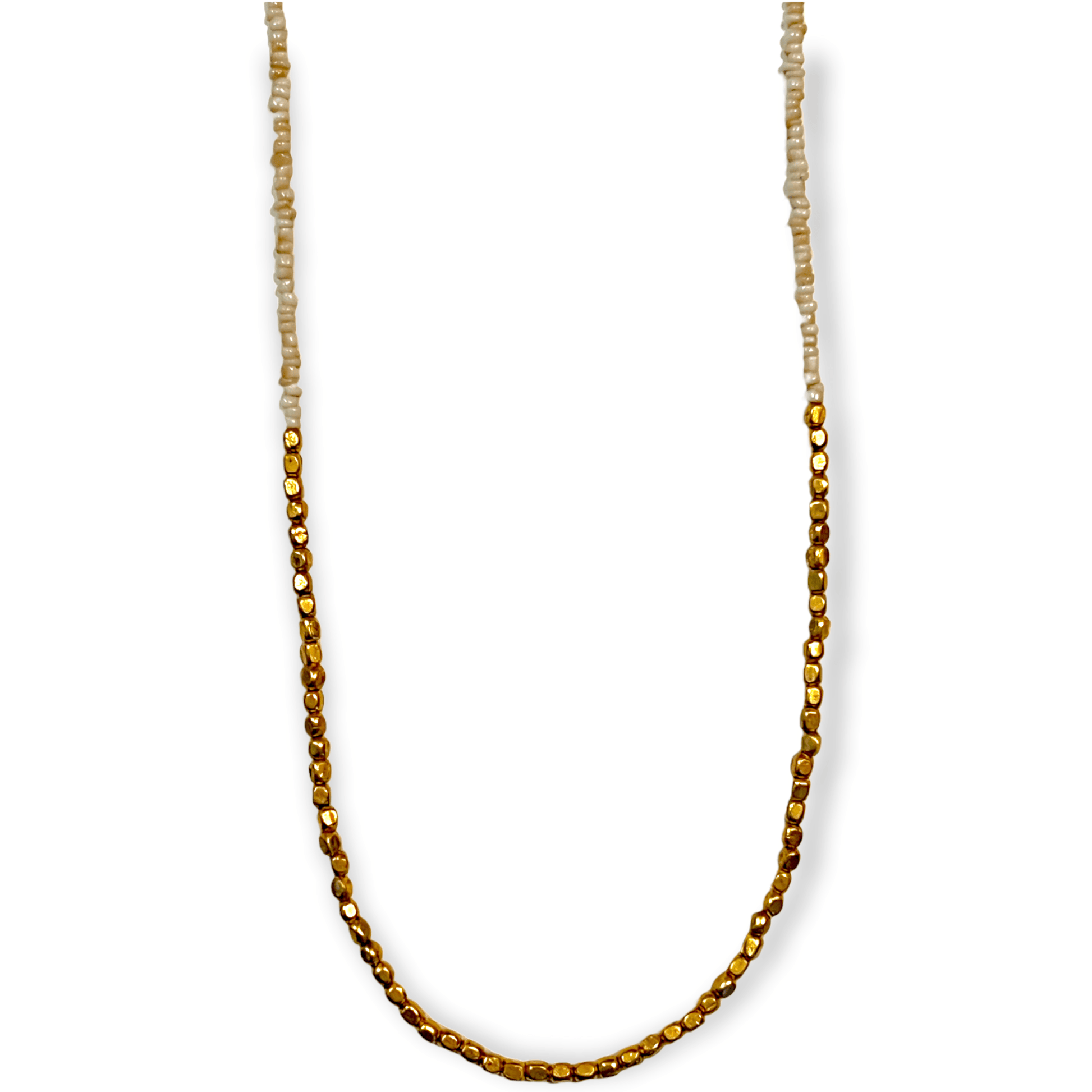 Brass & Quartz Beaded Necklace – Effortless Versatility, Artisan Detail