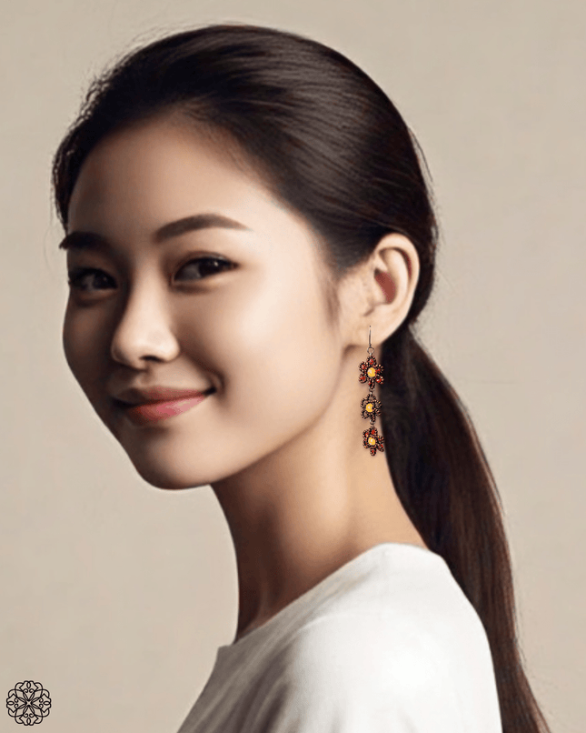 Amber Cascade Floral Drop Earrings – Nature’s Glow in Motion