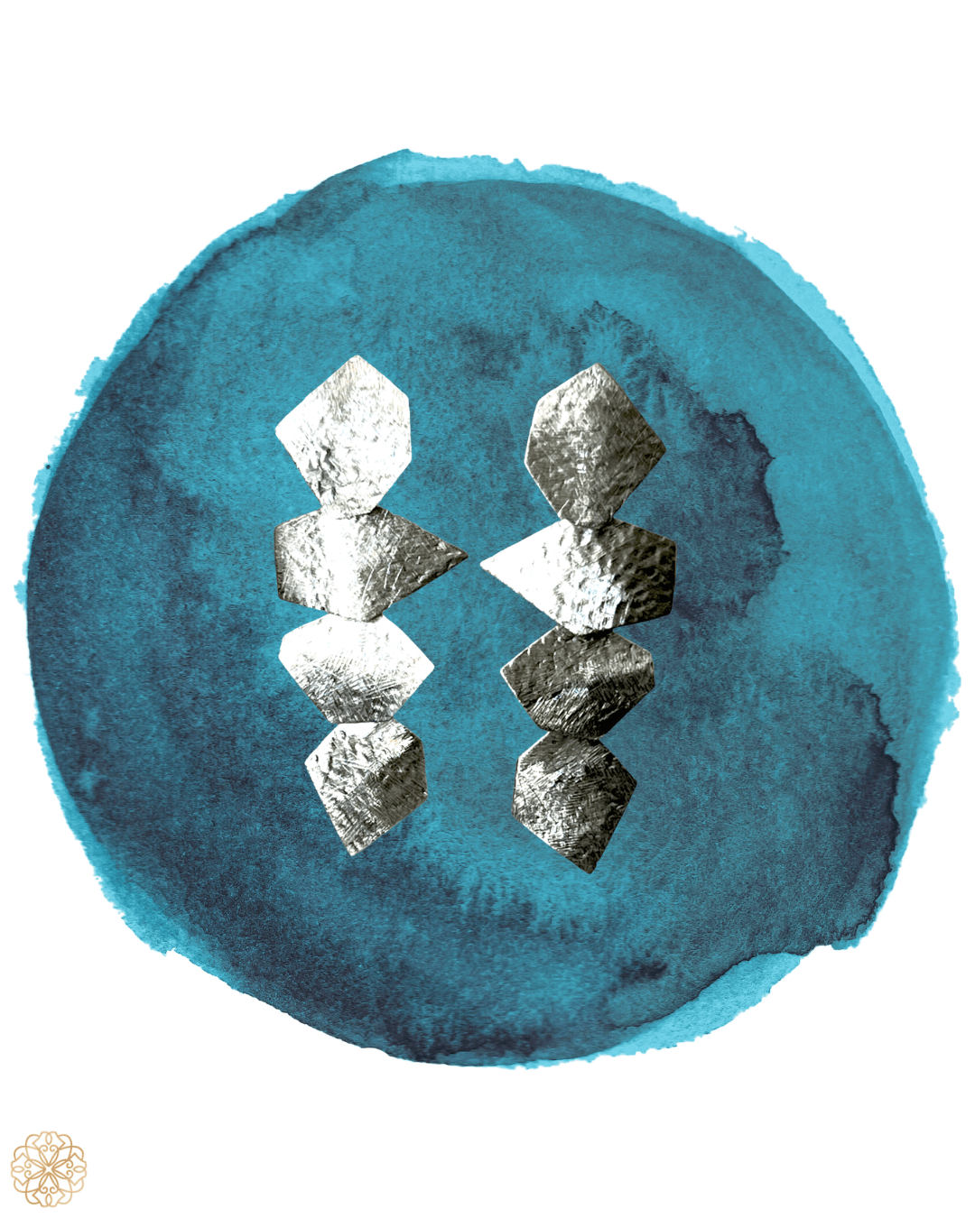 These sculptural drop earrings are all about modern movement and effortless elegance. Suspended from the ear are four organically shaped silver forms that cascade in a striking silhouette. Their irregular shapes and subtly textured finish catch the light just enough to make a quiet but bold statement.