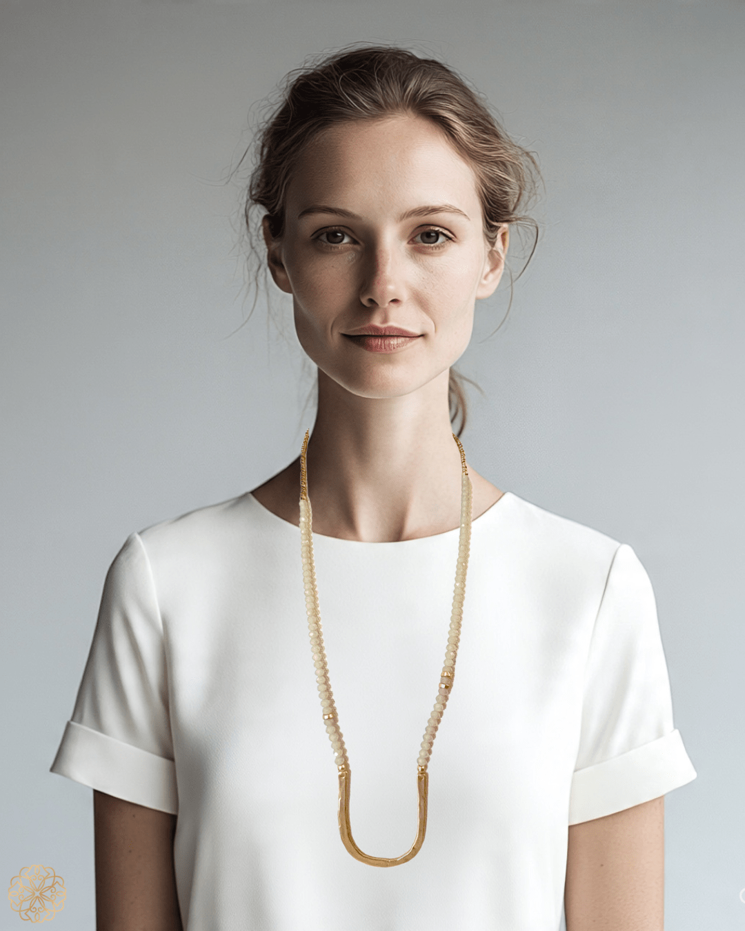 Chalcedony & Brass Beaded Necklace – Soft Serenity Meets Modern Edge