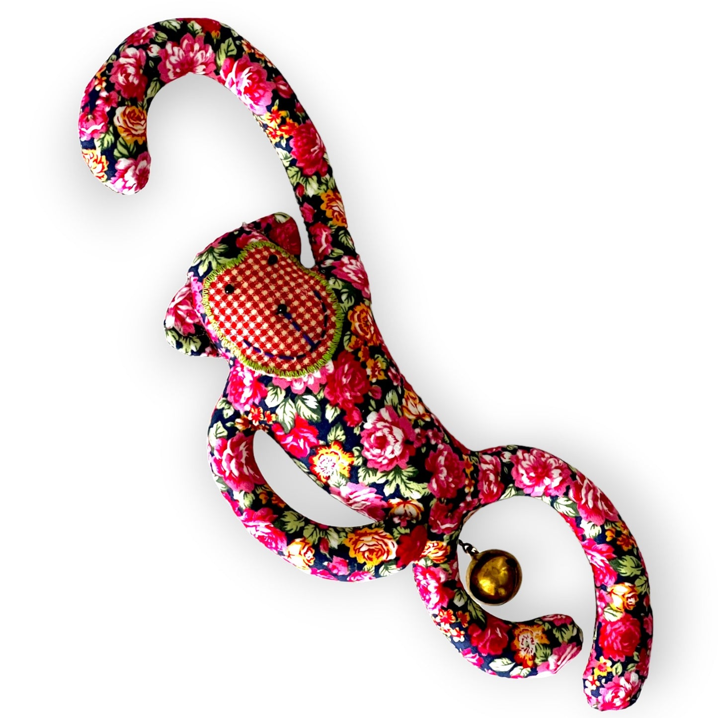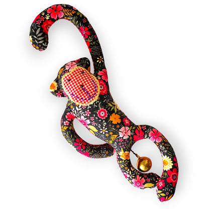 Designed to hang by one arm from a doorknob (or anywhere you fancy), this cheeky little fella adds a dose of fun to any space. The brass bell tail offers a soft jingle whenever the door swings, making it both decorative and interactive. With beaded eyes and nose, and floppy limbs, this monkey is all about personality.