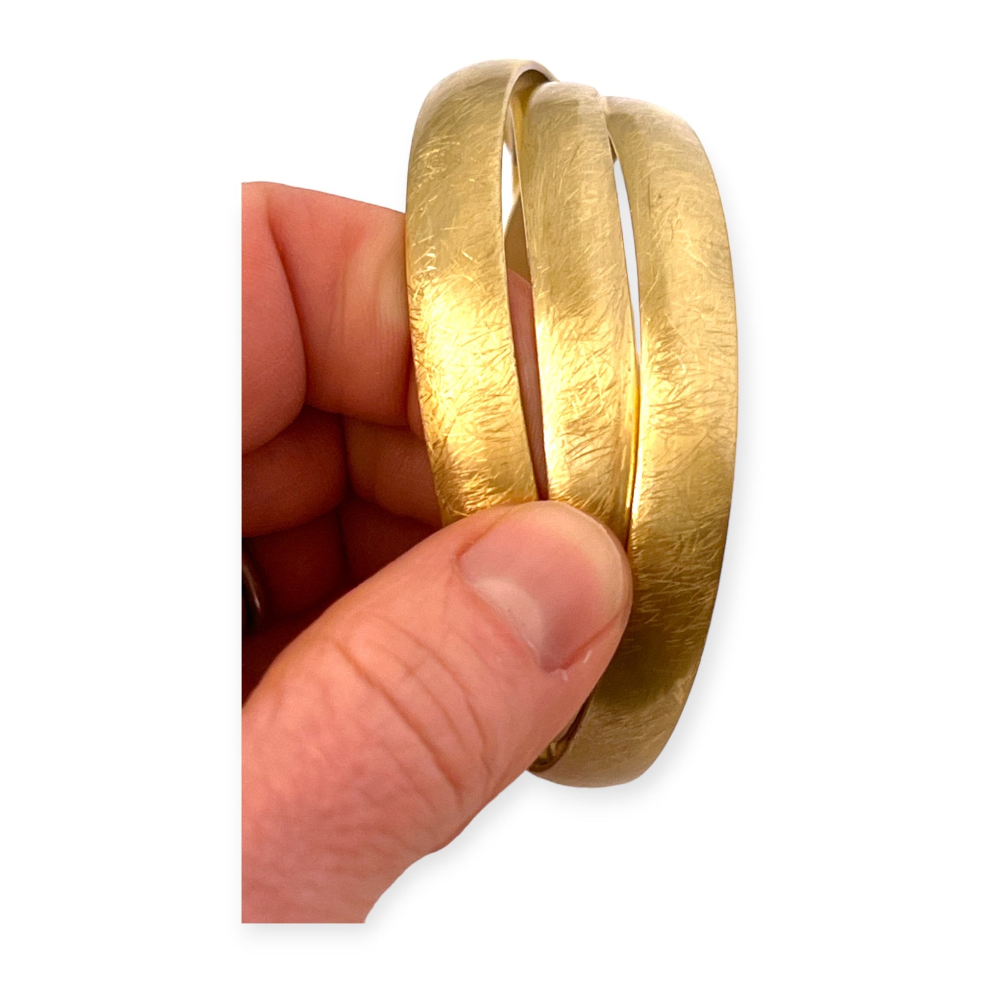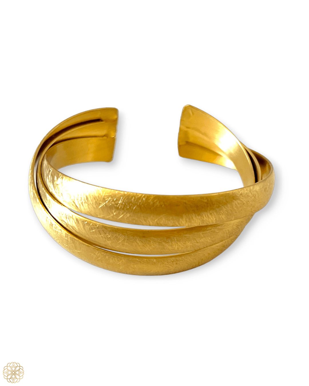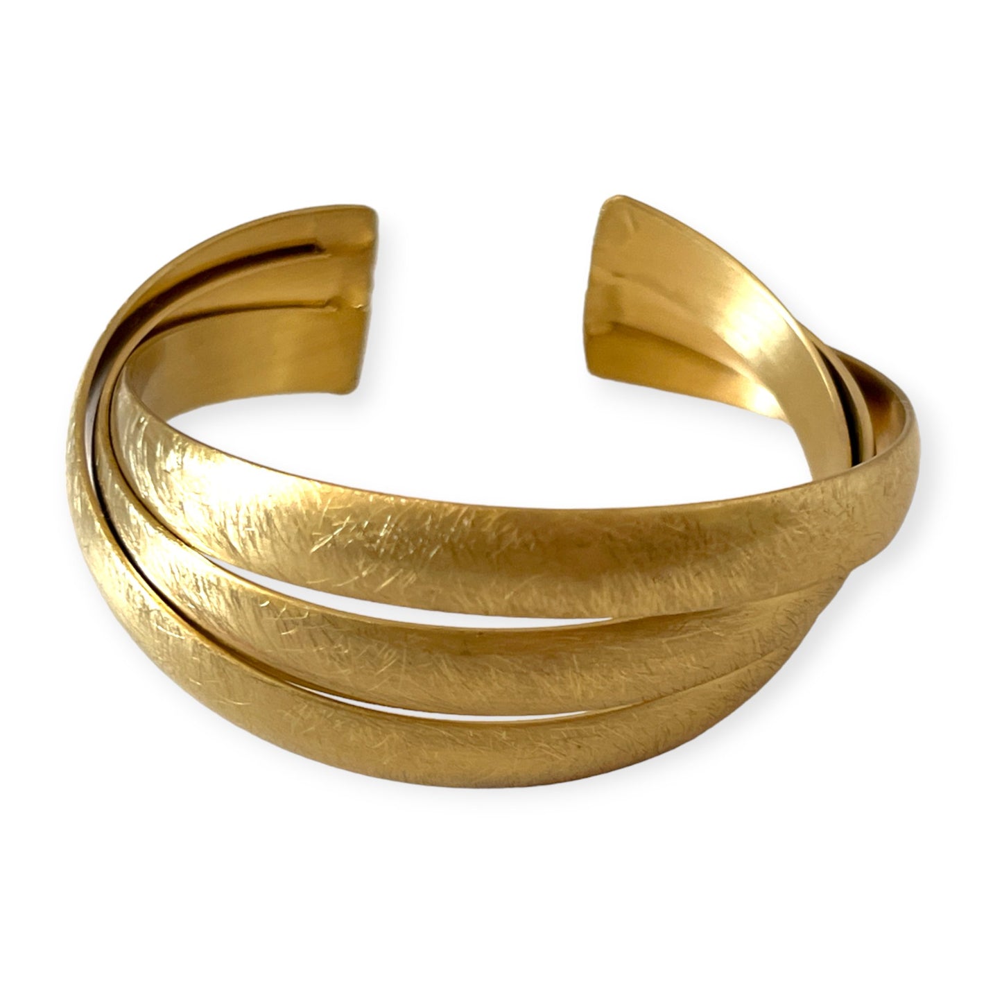 Embrace the timeless appeal of handmade design with this elegantly modern brass cuff bracelet. Crafted from a single piece of brass, this cuff features three overlapping bands and a brushed metal finish that adds texture and visual interest. Its minimal yet striking design makes it an effortless statement piece—perfect worn alone or layered with your favorite bracelets for a personalized stack.