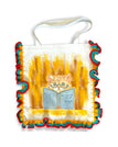 • Design: Bold character illustrations with colorful crocheted edging