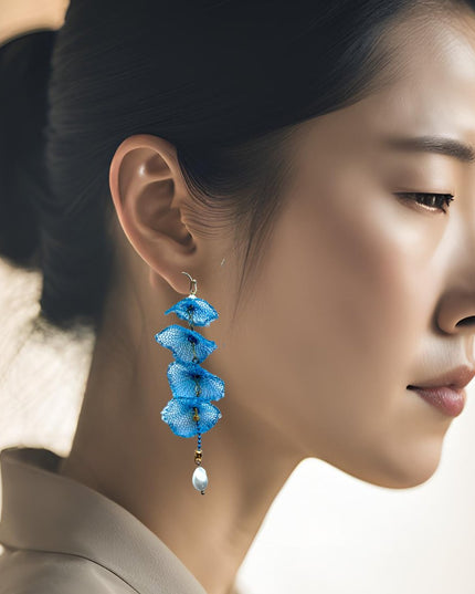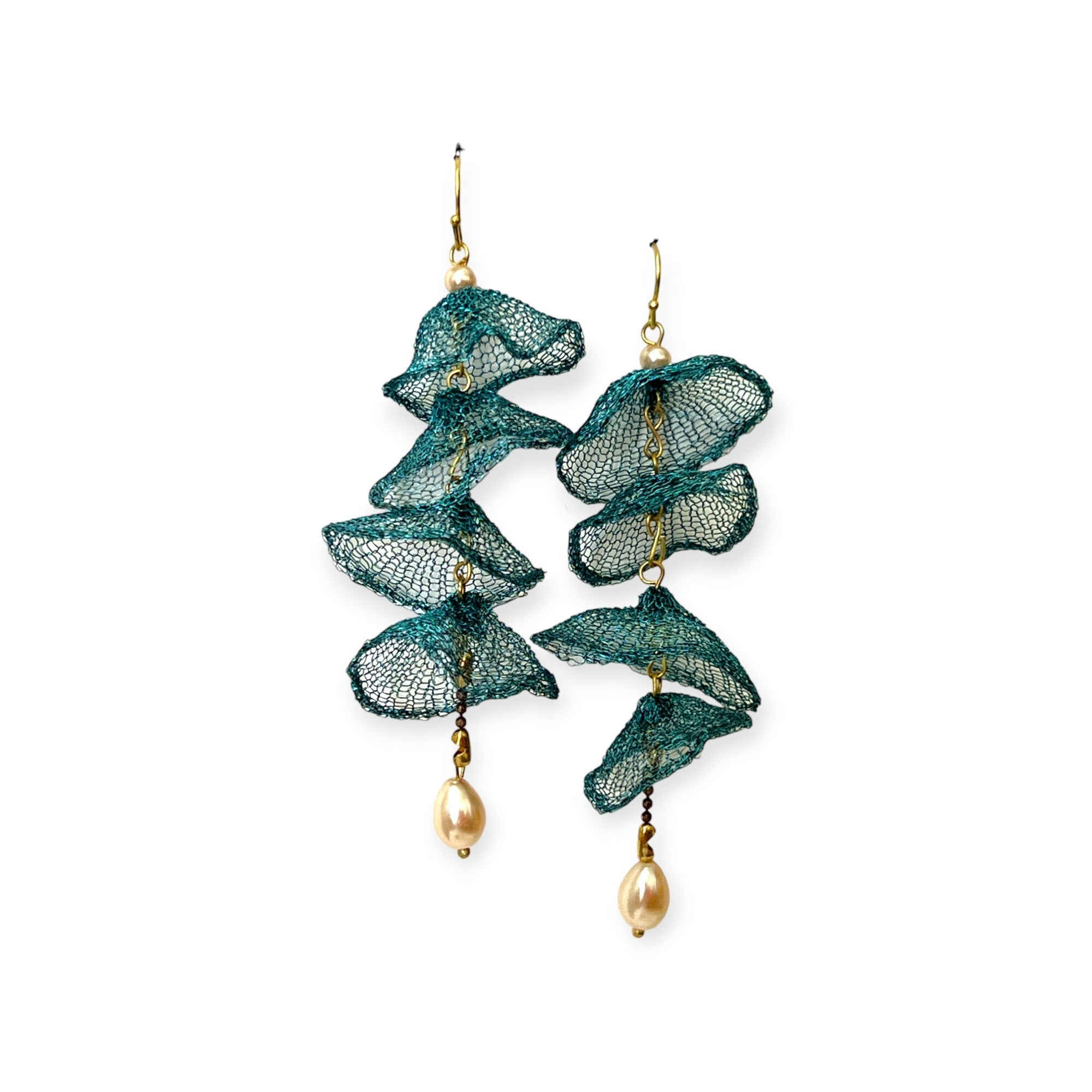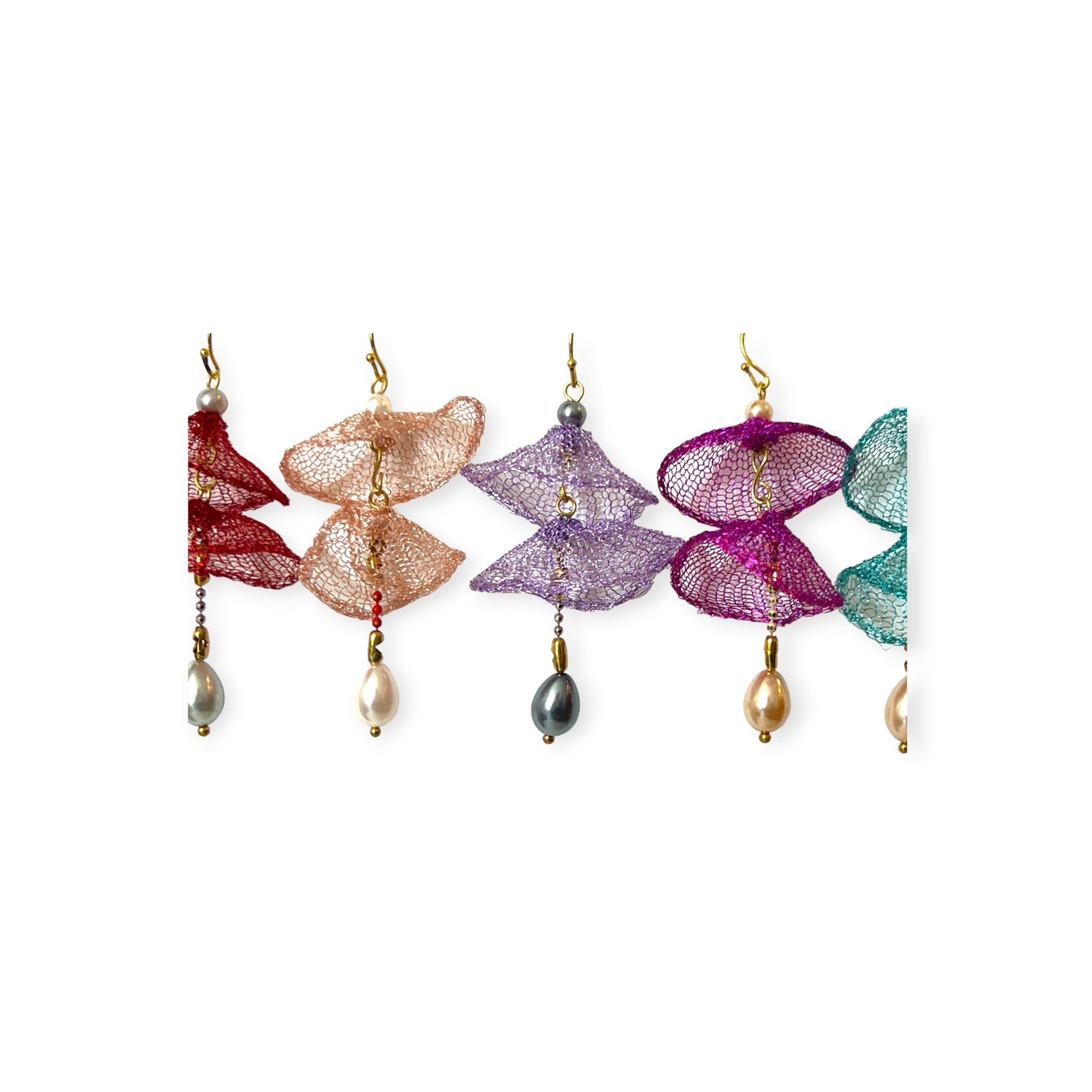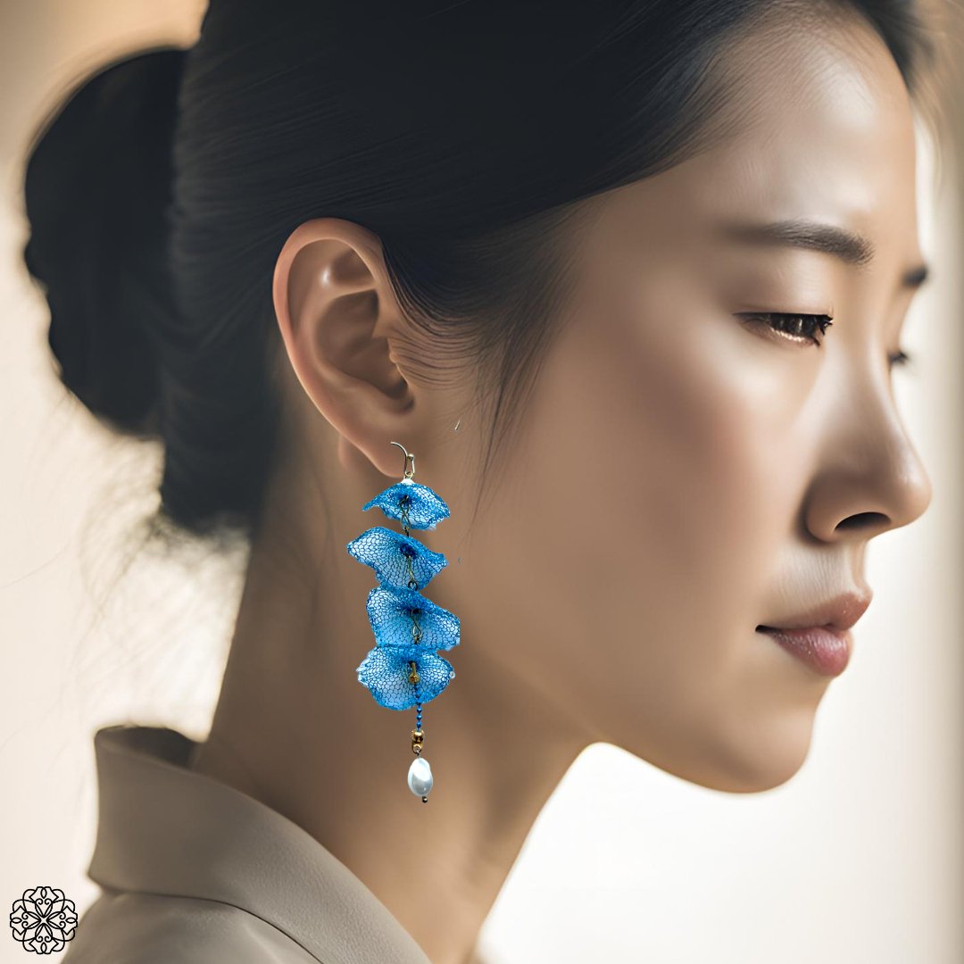Created by a solo artisan with an incredible eye for detail, these earrings immediately reminded us of coral reefs and magical sea creatures. Available in two dramatic styles—a bold four-layer version and a shorter two-layer design—they are perfect for anyone who wants to make a statement that feels both fresh and fluid.