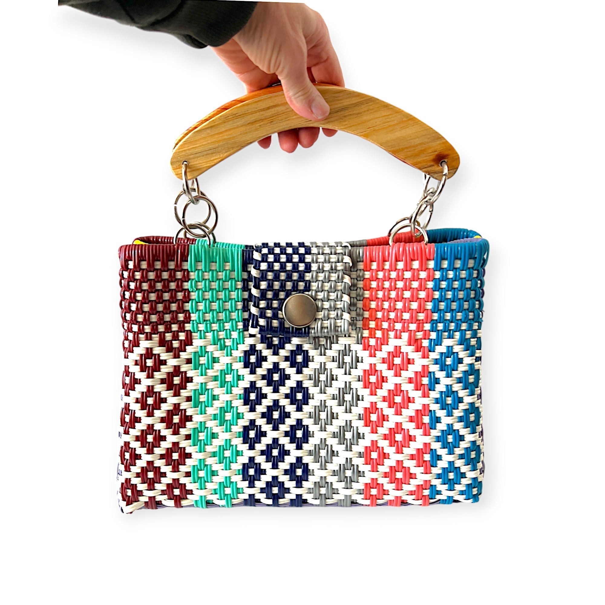 Colorful woven square handbag