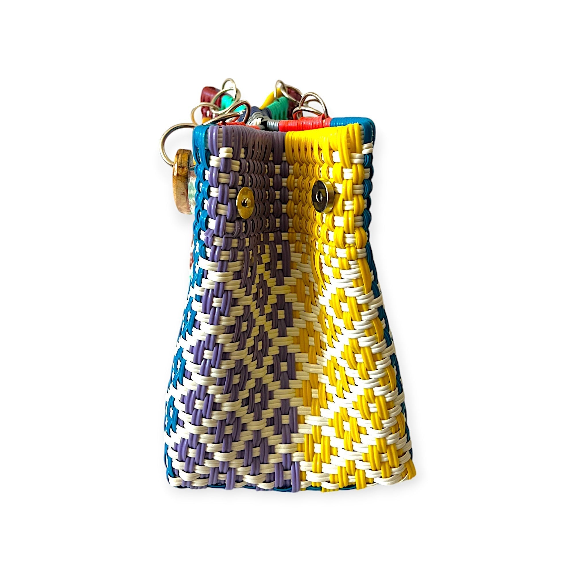 This vibrant woven square handbag isn’t just an accessory—it’s a celebration of color, creativity, and unapologetic fun. With a roomy interior and flexible structure, it’s one of those magical bags that feels bottomless (for better or worse—we say better!).