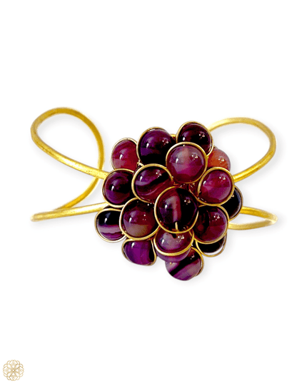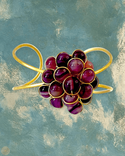 This handmade open cuff brings together simplicity and sophistication in one effortlessly chic design. At the top, a stunning cluster of natural gemstones steals the spotlight—choose between the warm, earthy tones of Tiger Eye or the regal, mysterious beauty of Amethyst. Either way, you're in for a bold and colorful statement.