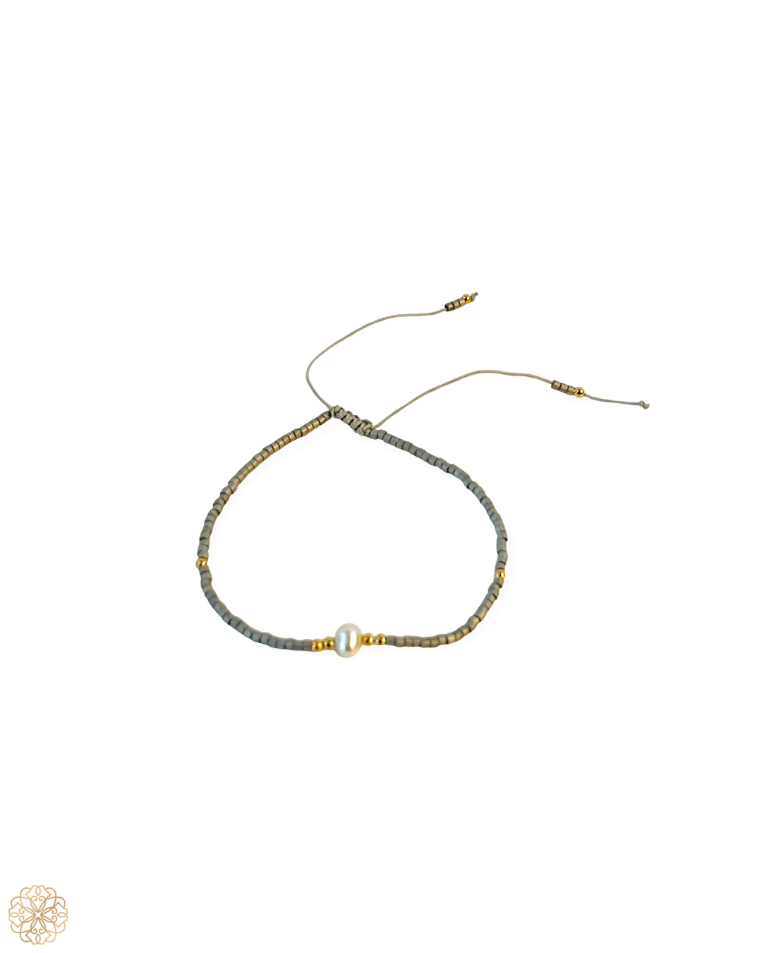 We adore the delicate simplicity of this adult friendship-style bracelet—a lightweight cord accented with brass and seed beads, centered around a petite pearl for a soft, luminous touch. Beautiful on its own and even better layered, it’s the kind of piece that becomes an everyday favorite.
