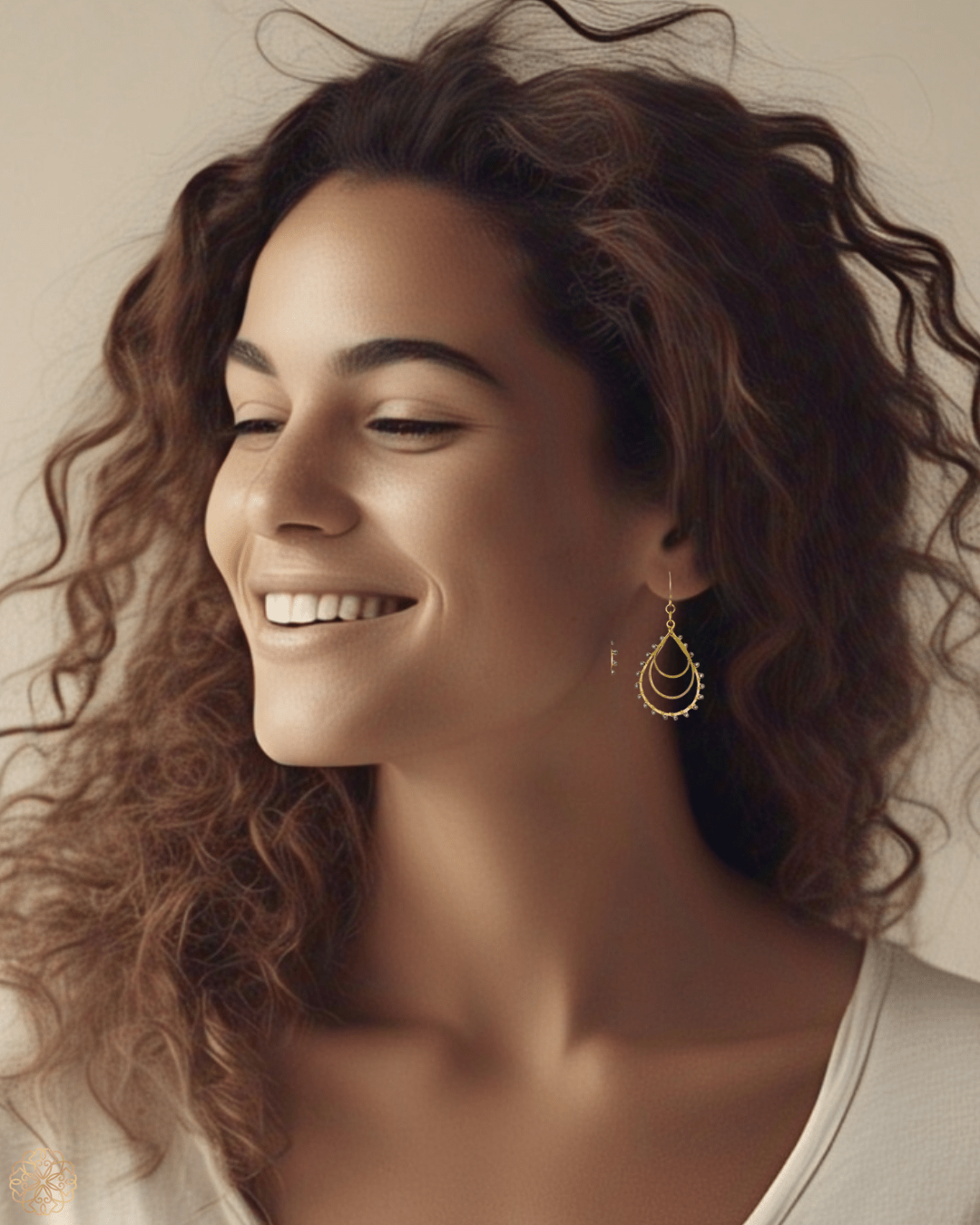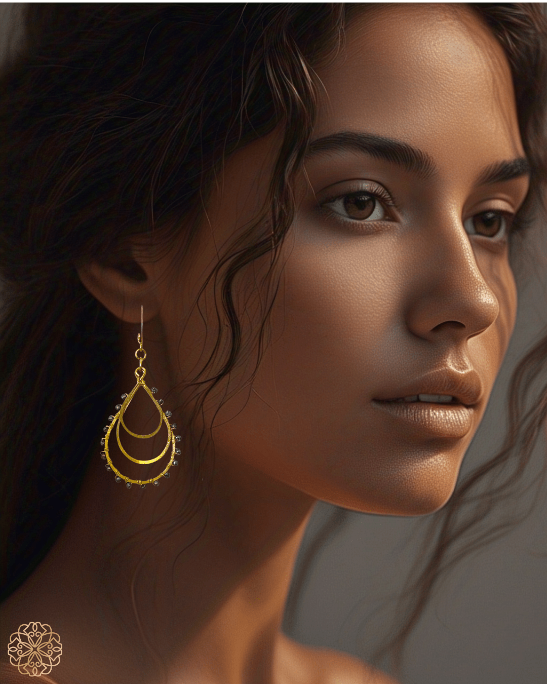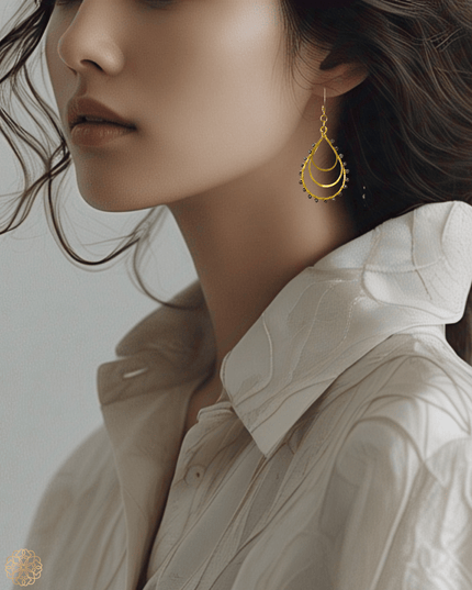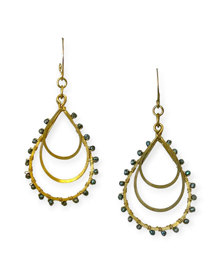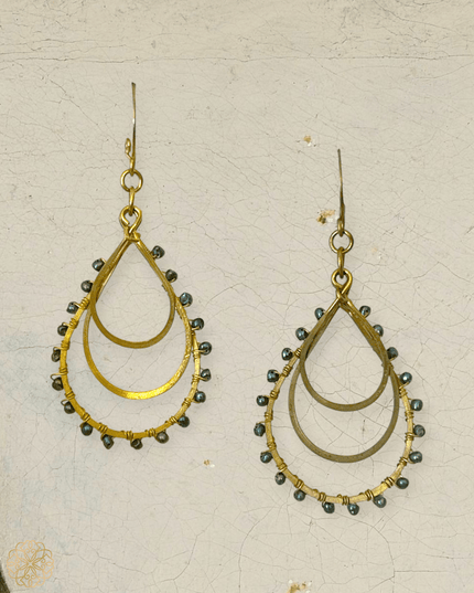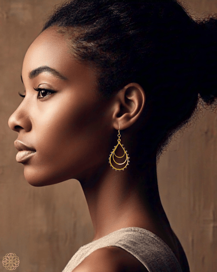 These Delicate Beaded Tribal Earrings strike the perfect balance between bold and understated. Featuring a graceful trio of nested teardrop hoops, each earring cascades from the ear with fluid elegance. The outermost hoop is delicately adorned with tiny black pearls, adding a refined texture and soft luster to this tribal-inspired design.