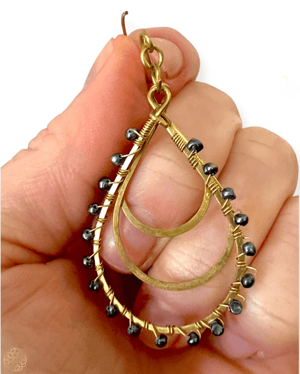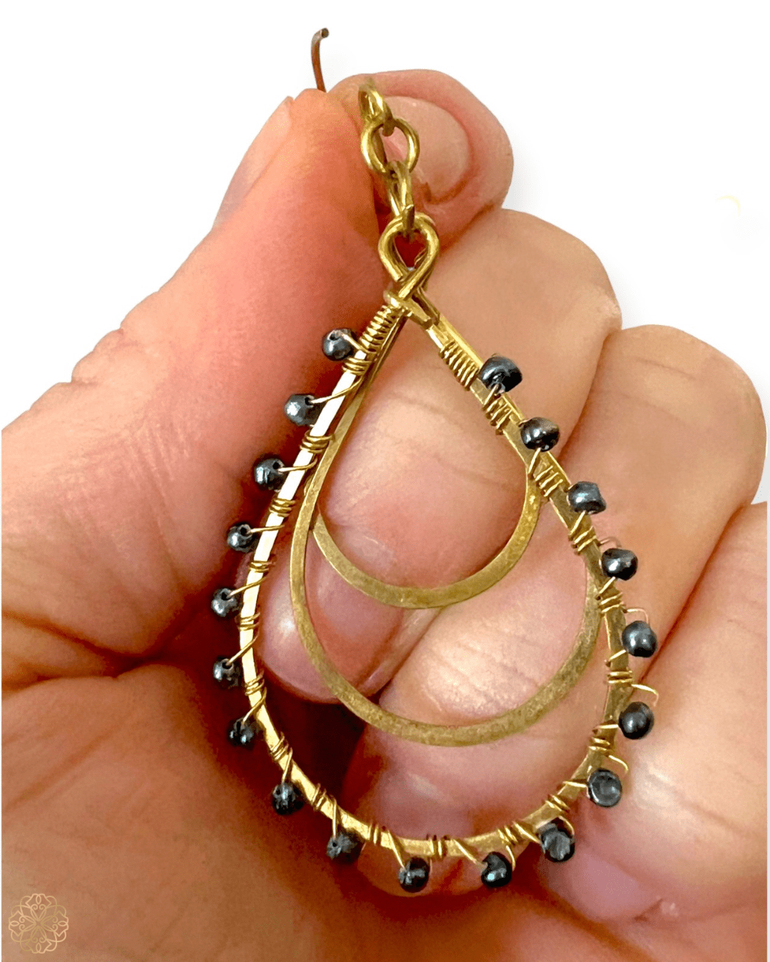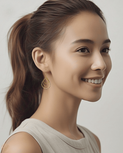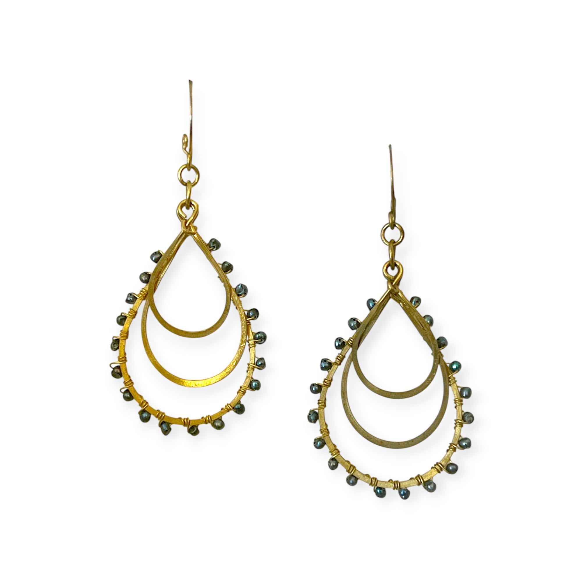These Delicate Beaded Tribal Earrings strike the perfect balance between bold and understated. Featuring a graceful trio of nested teardrop hoops, each earring cascades from the ear with fluid elegance. The outermost hoop is delicately adorned with tiny black pearls, adding a refined texture and soft luster to this tribal-inspired design.