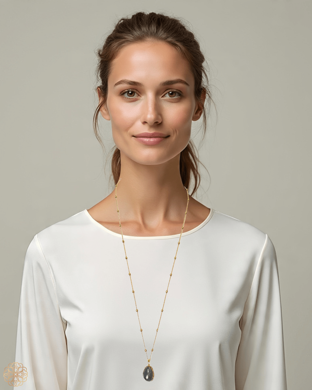 Chain: Continuous matinee length ~15" (40 cm); no clasp—slips easily over the head