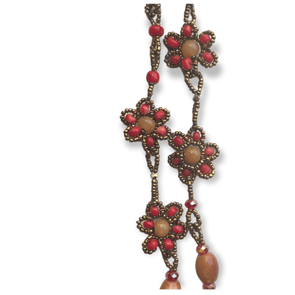 • Handcrafted double strand necklace with floral gemstone centerpiece