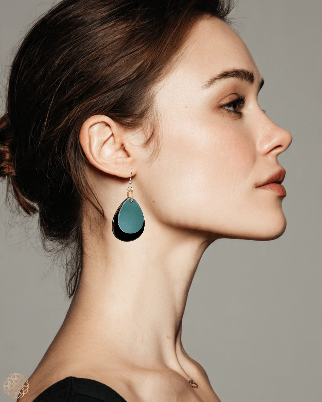 These double teardrop earrings feature a timeless silhouette with a fresh perspective. A smaller teardrop, available in a contrasting color or subtle enamel accent, sits in front of a larger natural horn teardrop, creating depth and dimension. The clean lines and minimalist design make them a versatile accessory for both everyday wear and more polished looks.