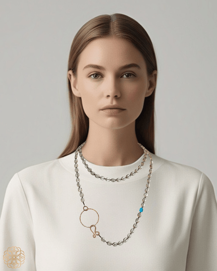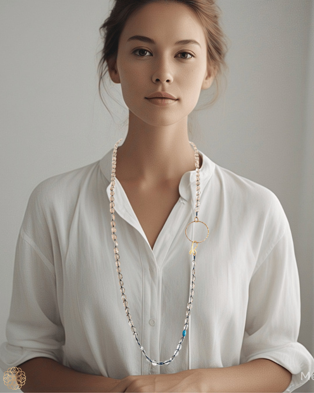 As this necklace has no clasp it is easy to put on and remove. Wear it long, or double it up as a sophisticated option. It is a perfect accent for a simple top and its longer length makes it wonderfully versatile.