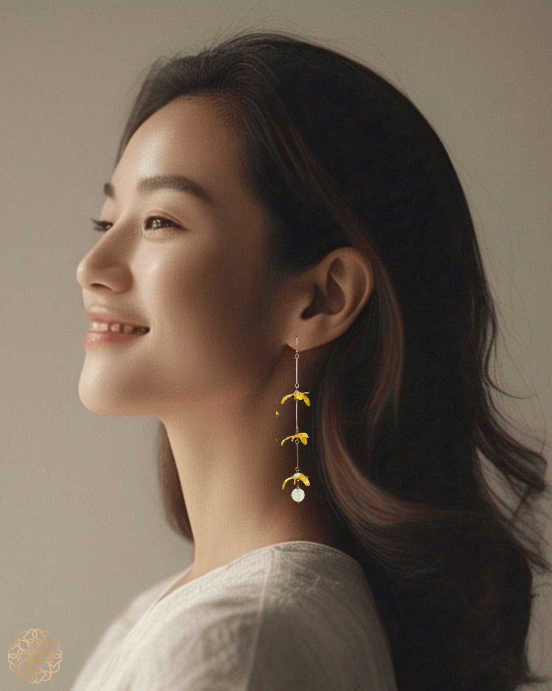 Closure: Graceful hook fastenings for pierced ears—lightweight and comfortable