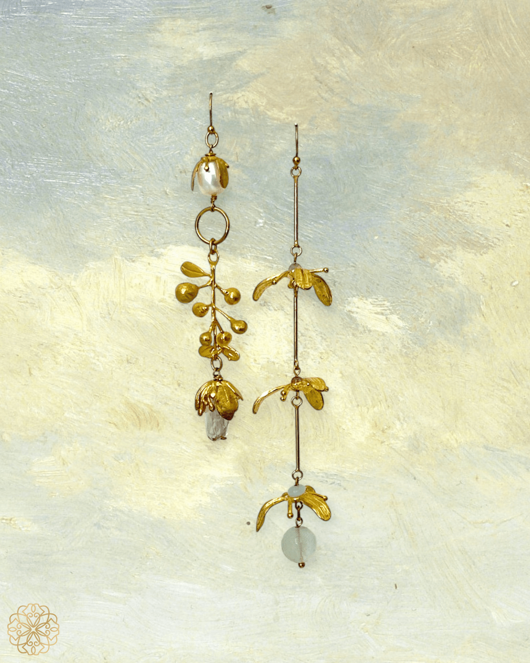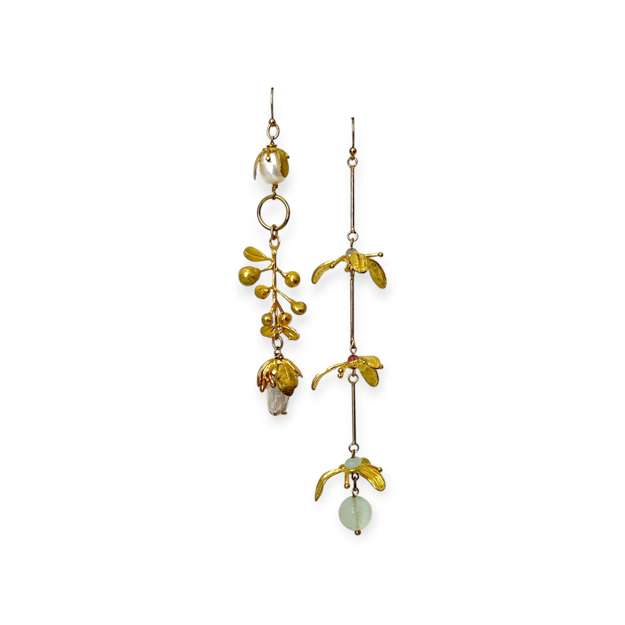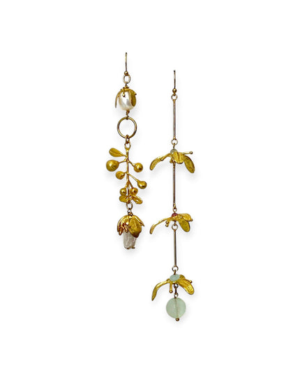 Floral Tendril Mismatched Earrings – Pastel Poetry in Brass & Gemstone