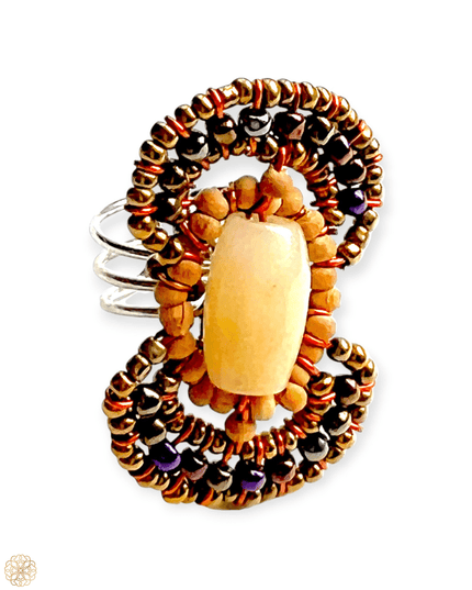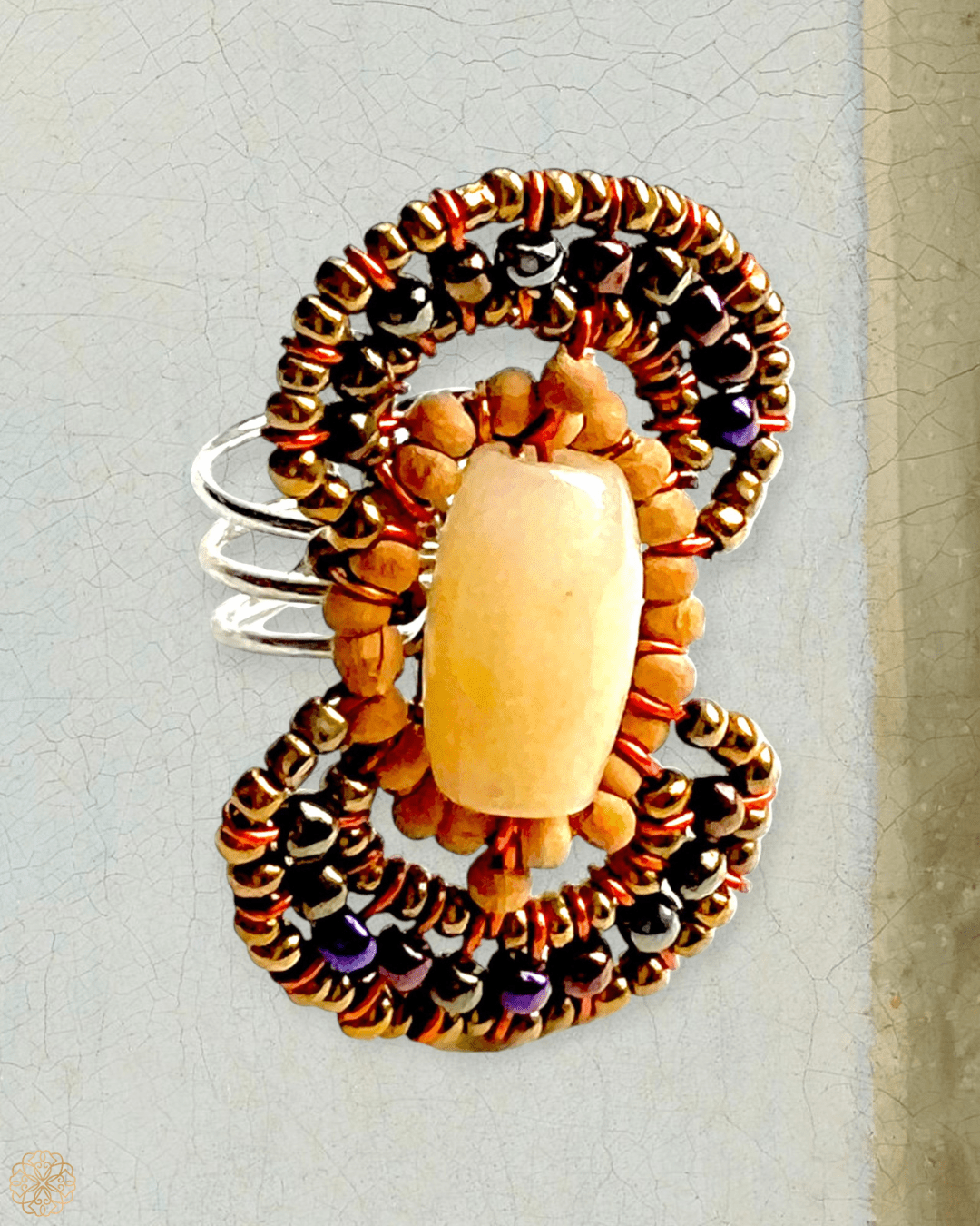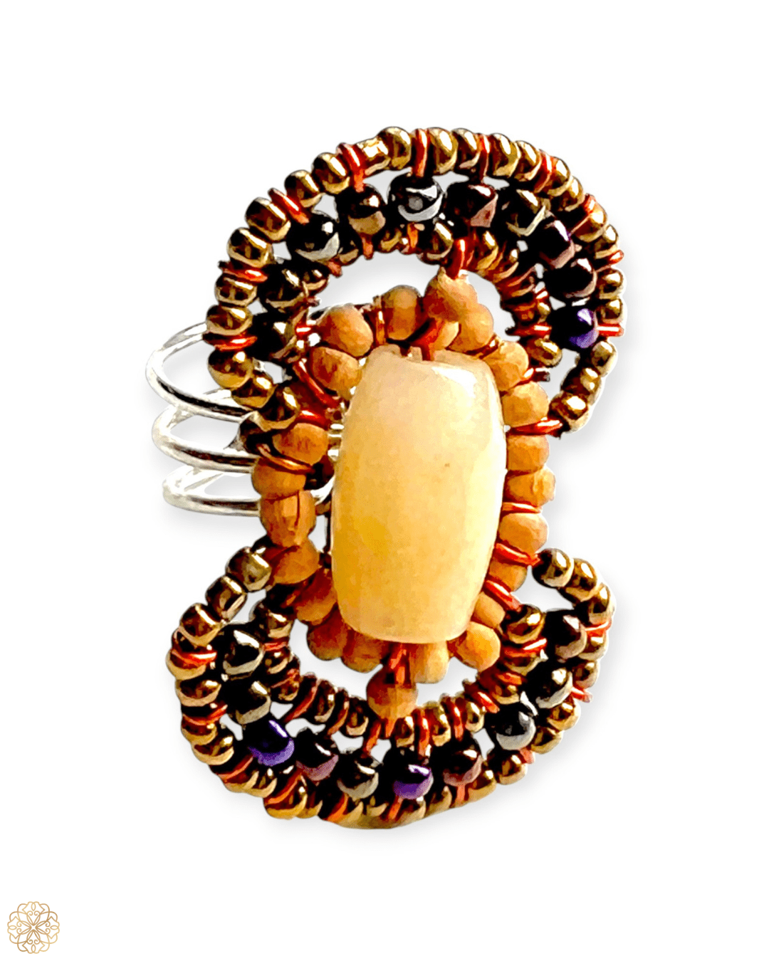 • Artisan Crafted: A hand-beaded ring with sculptural presence and warmth