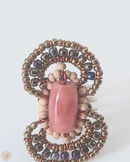 Beaded Gemstone “Figure 8” Statement Ring – Artful Form, Natural Beauty