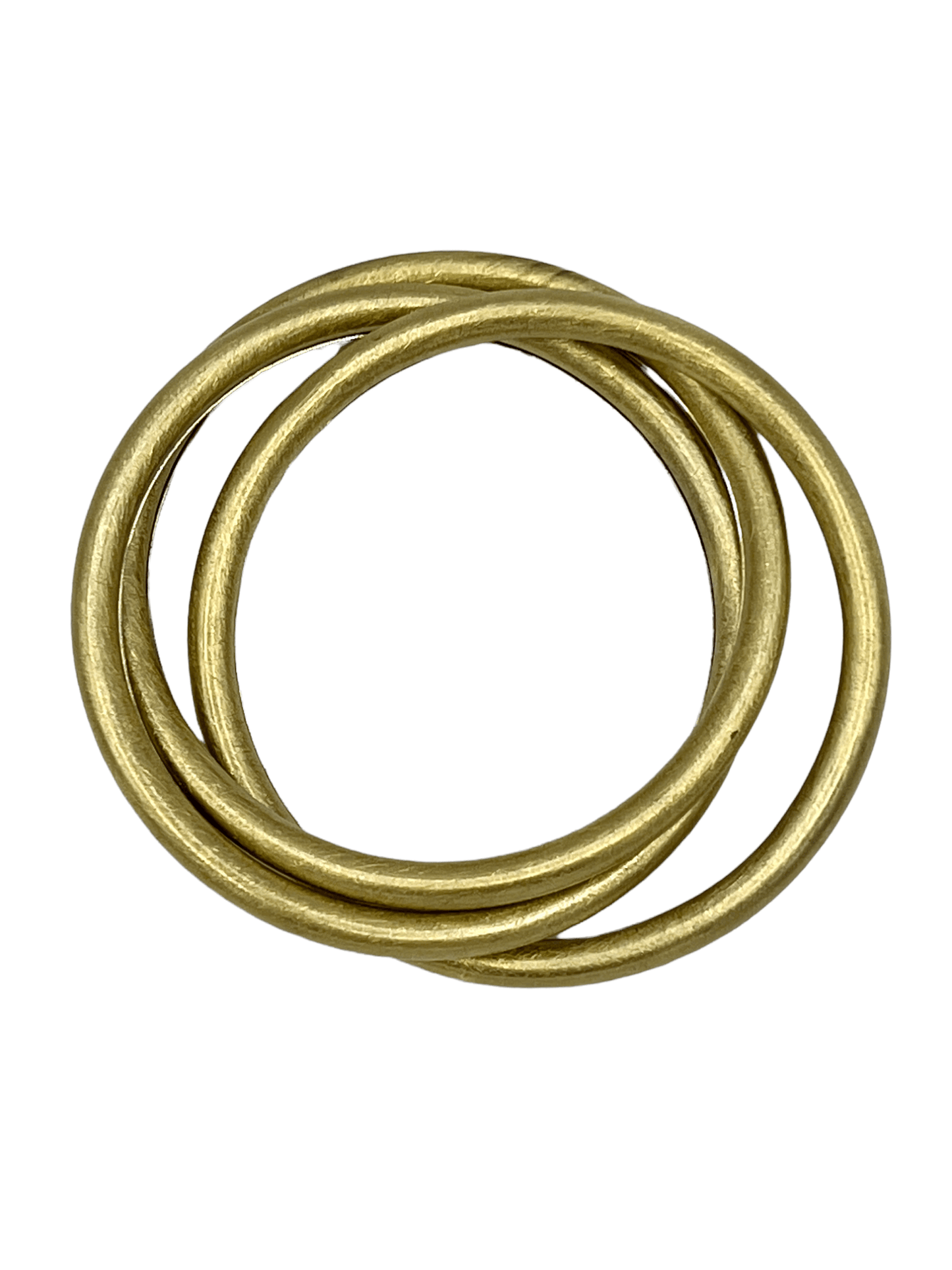 Each bracelet is actually a trio of bangles—three circles intertwined in one sculptural design. The interlocking structure creates soft, rhythmic motion on the wrist while ensuring you never misplace a piece. Just slip it on, let it catch the light, and go.