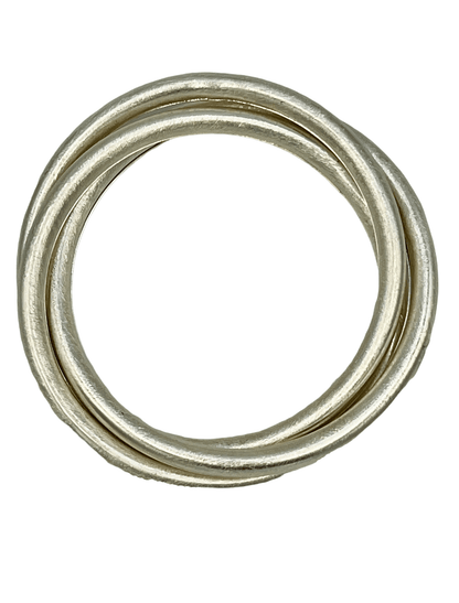 A modern classic with a twist. This triple-interlocking bangle bracelet brings refined style and subtle drama to your everyday look. With its brushed metal finish and fluid movement, it adds a luminous polish that feels both timeless and contemporary.