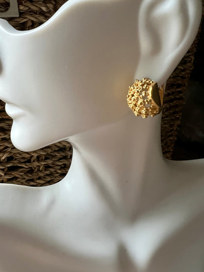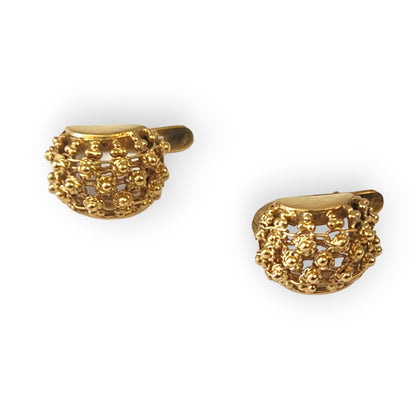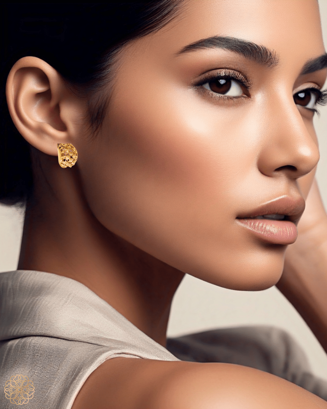Each pair is meticulously formed in sterling silver, shaped into an intricate, lace-like pattern that feels at once classic and contemporary. Finished with a luxurious layer of 24k gold plating, they exude a warm, refined glow that elevates any outfit—whether you’re dressing up denim or adding polish to eveningwear.
