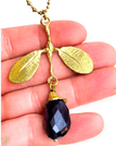 Design: Handmade pendant necklace featuring an inverted blossom design with a suspended gemstone bloom beneath a brass twig and leaf setting