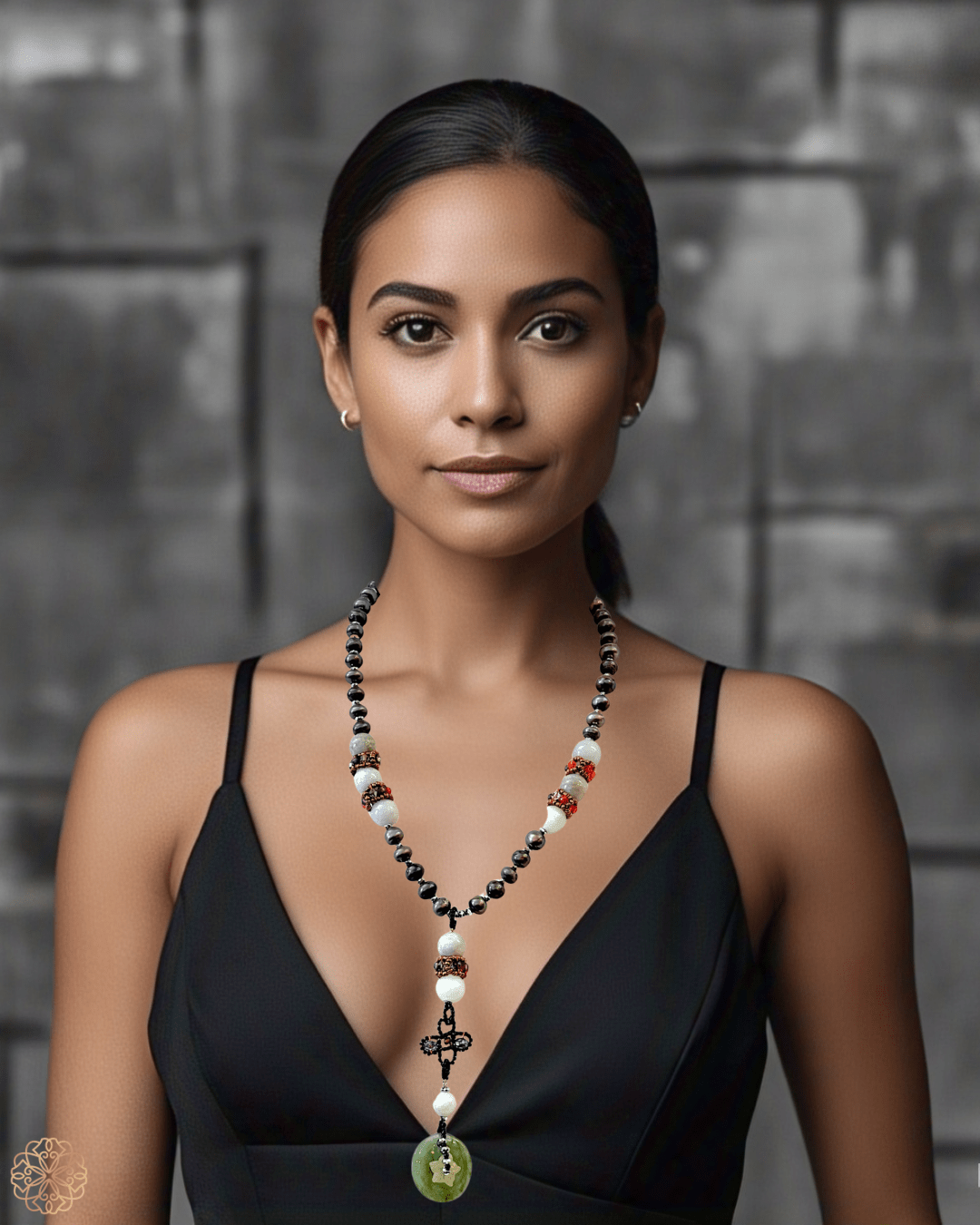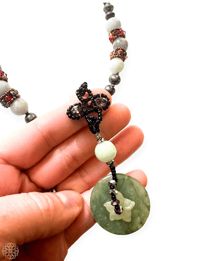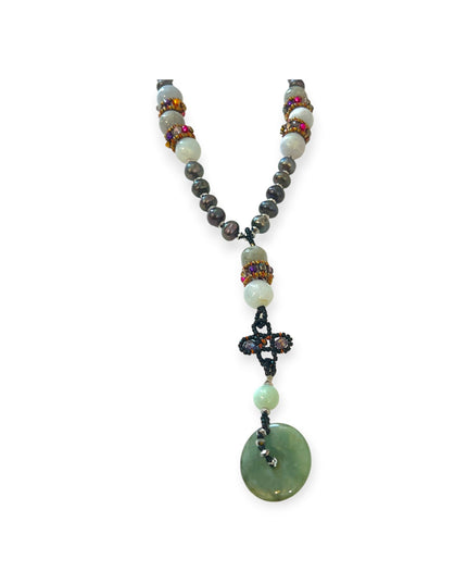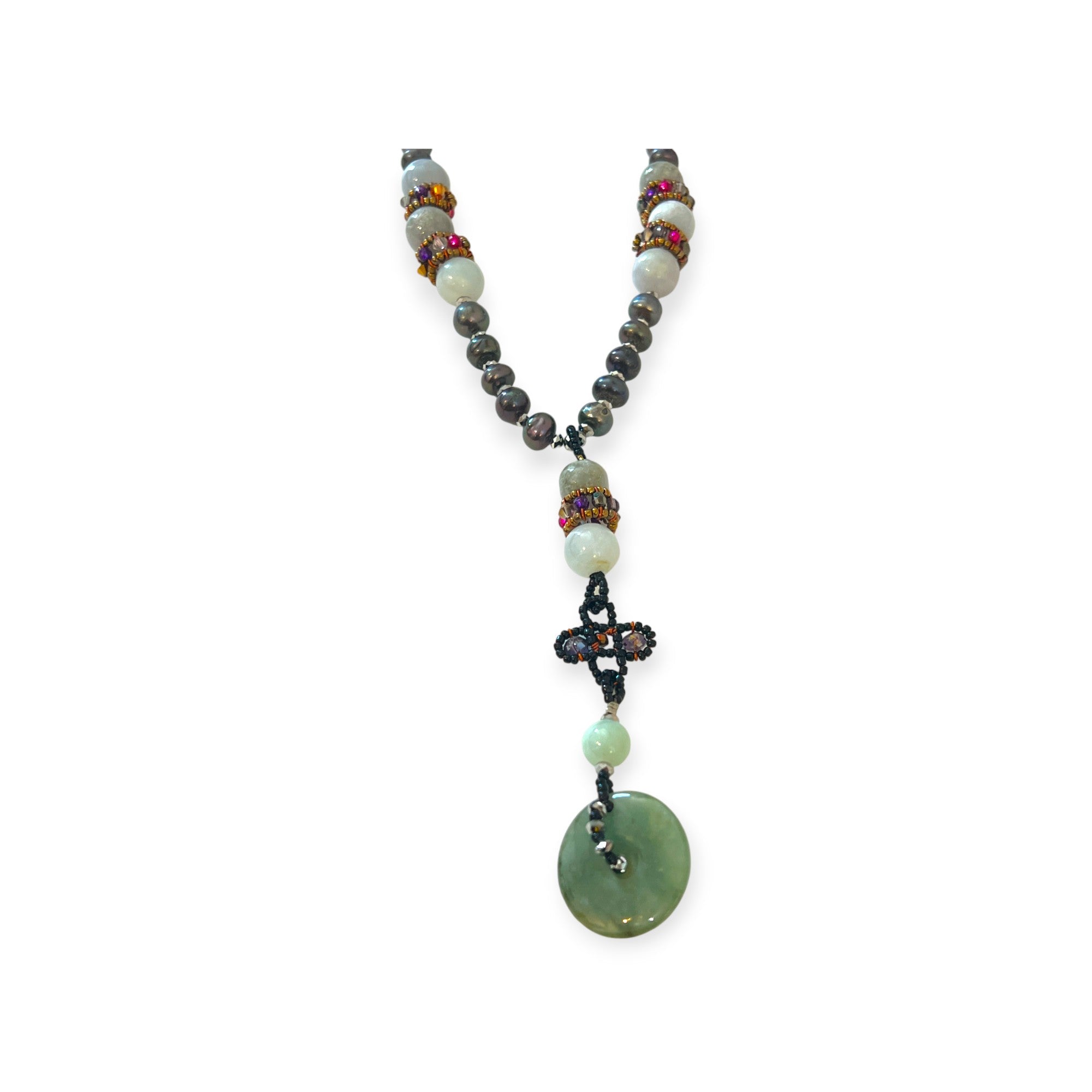 Jade & Pearl Beaded Statement Necklace with Jadeite Disk – Elegance in Motion