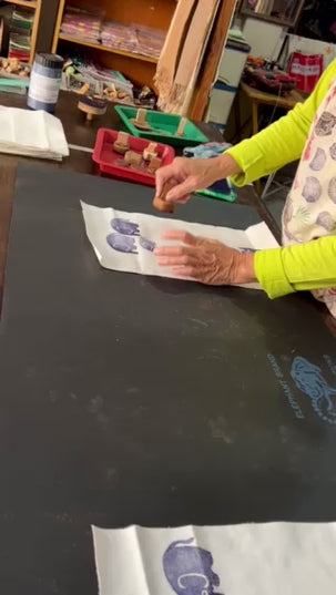 The moment we stepped into her studio, we found her mid-process—hand-printing an elephant on fabric with remarkable precision. We were instantly drawn in by her focus, her artistry, and the quiet beauty of her creations. What began as a visit turned into a treasured discovery.