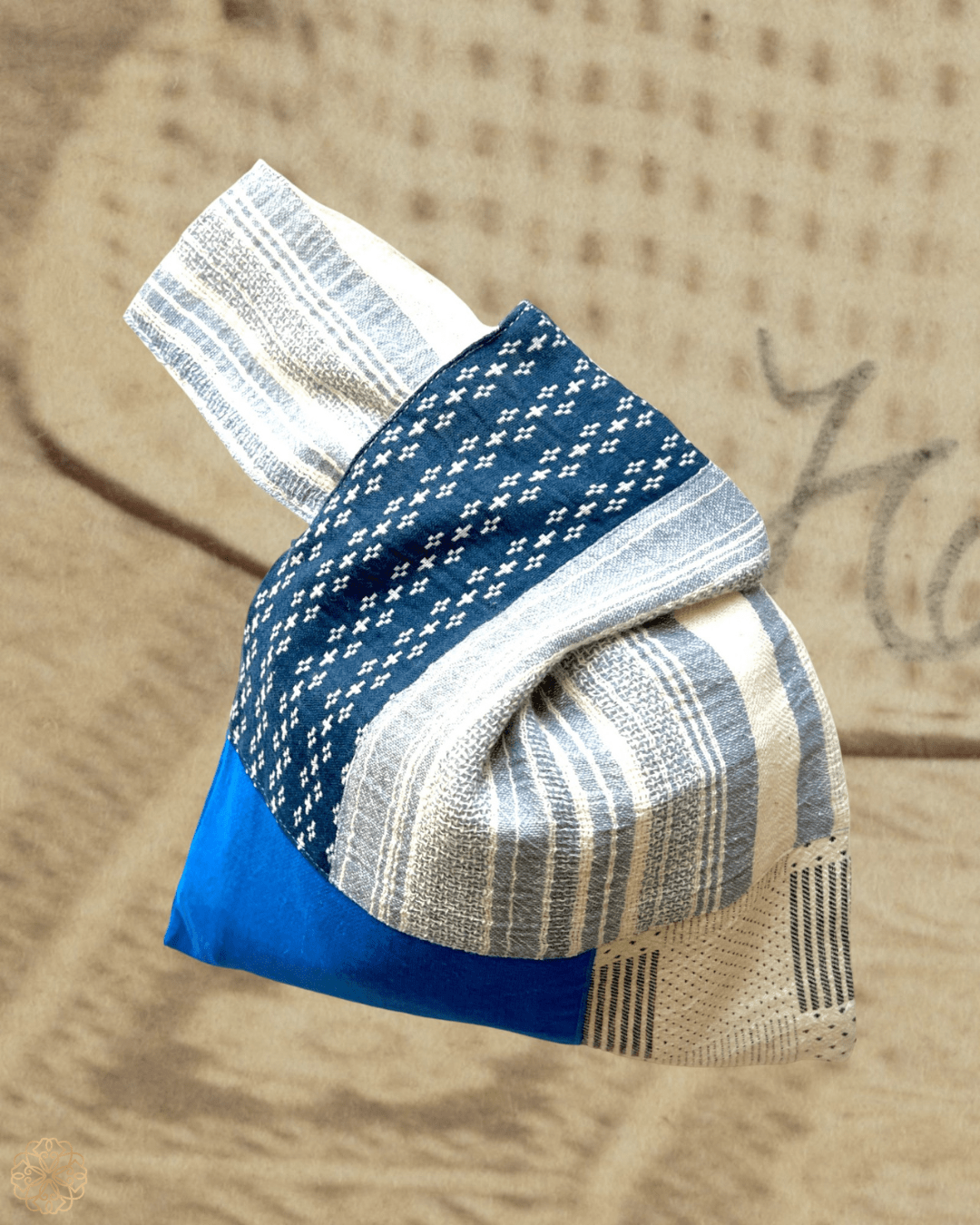 These charming blue fabric bags are more than just accessories—they’re miniature masterpieces handcrafted by a gifted textile artist in Thailand. Made from soft cotton in serene shades of blue, each bag features a clever strap-through-strap design that creates a unique silhouette and an easy-to-carry handle.