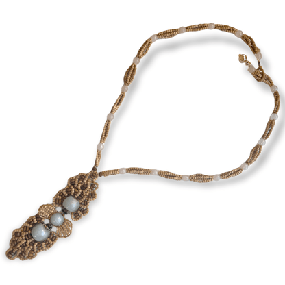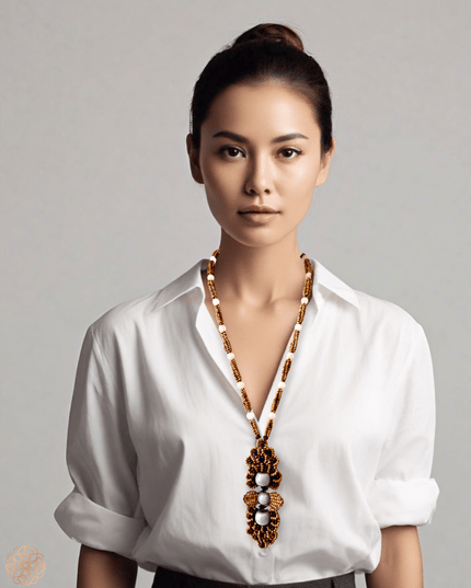 Art Deco–Inspired Magnesite & Quartz Medallion Necklace – Singular Statement, Timeless Craft